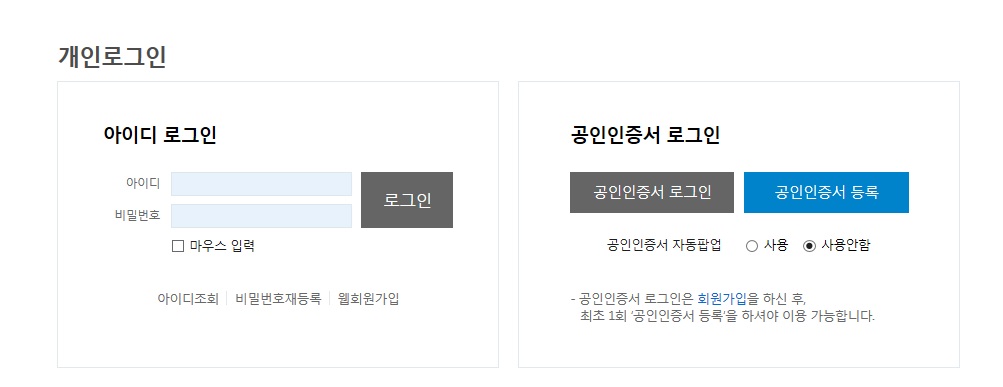 이용을 하지 않고 타은행 공인인증서를 발급받아