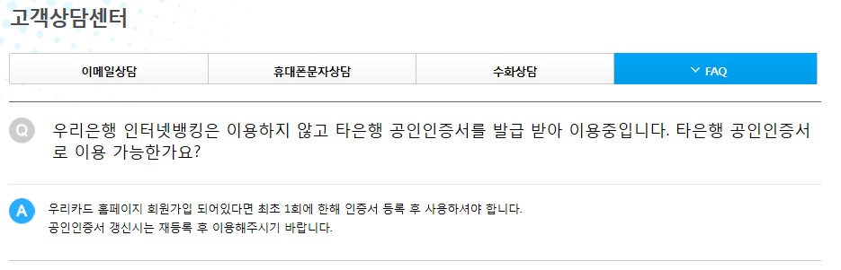 이상 우리카드 공인인증센터 대해
