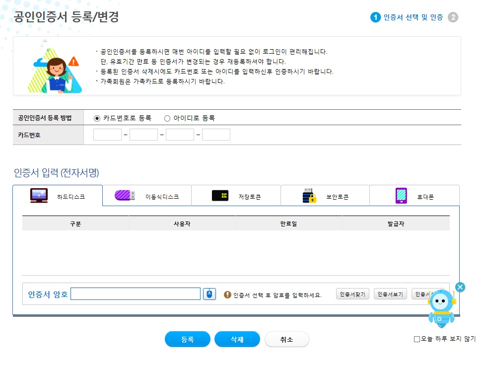 카드 또는 아이디로 등록이 가능한데요
