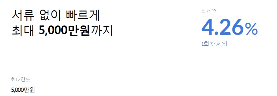 서류 없이 빠르게 오천만원까지 가능합니다.