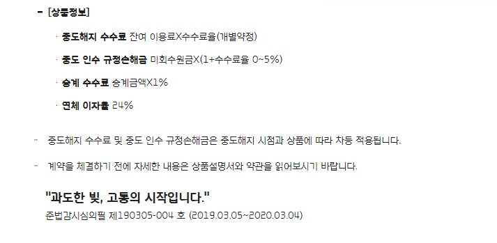 중도해지수수료, 중도인수규정손해금,승계수수료입니다. 중요한것은 연체 이자율도 발생을 하니 연체 주의하시길 바랍니다.