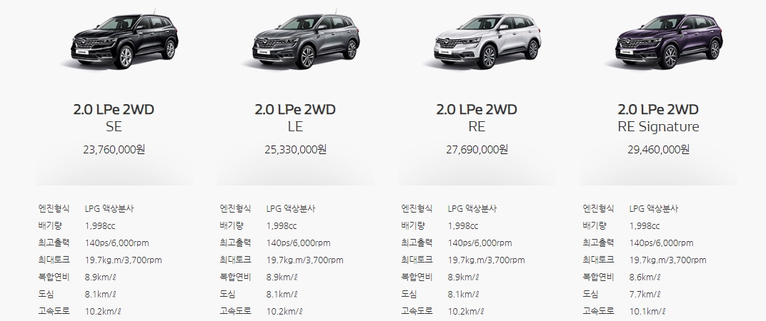 친환경차인lpg 모델들 차량은 차량원가가 가솔린 보다 더 비싸다고 합니다. 그래서 다른 제조사에서 나오는 모델들 보면 가솔린 보다 lpe 모델들이 비싸다는 것을 확인을 했을텐데요 qm6 오히려 저렴하니 파격적이라는 표현이 맞겠네요