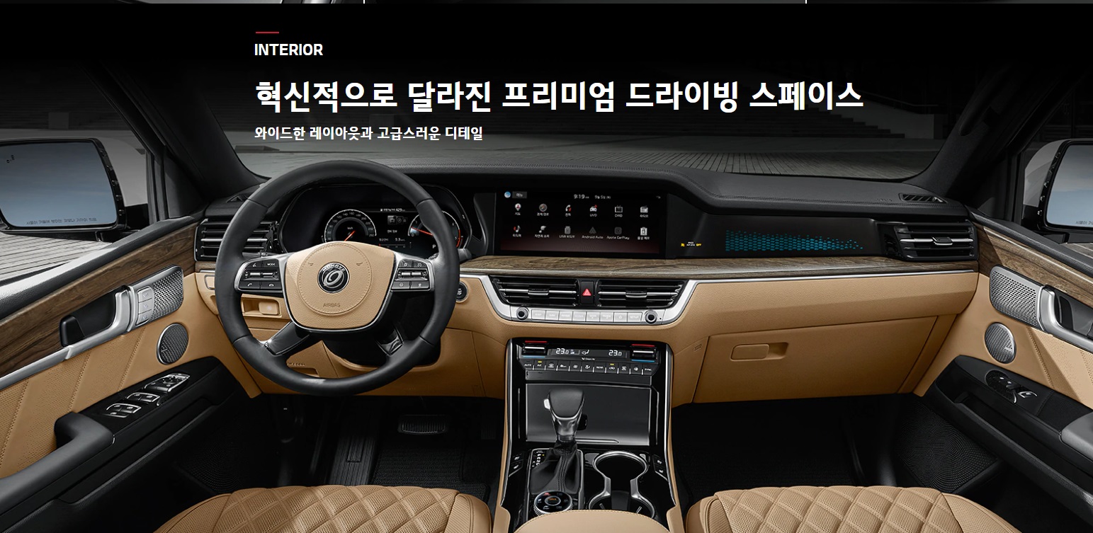 입히고 동승석에 무대램프를 1열 양쪽 도어 트림까지 확장시켜 고급스러움을