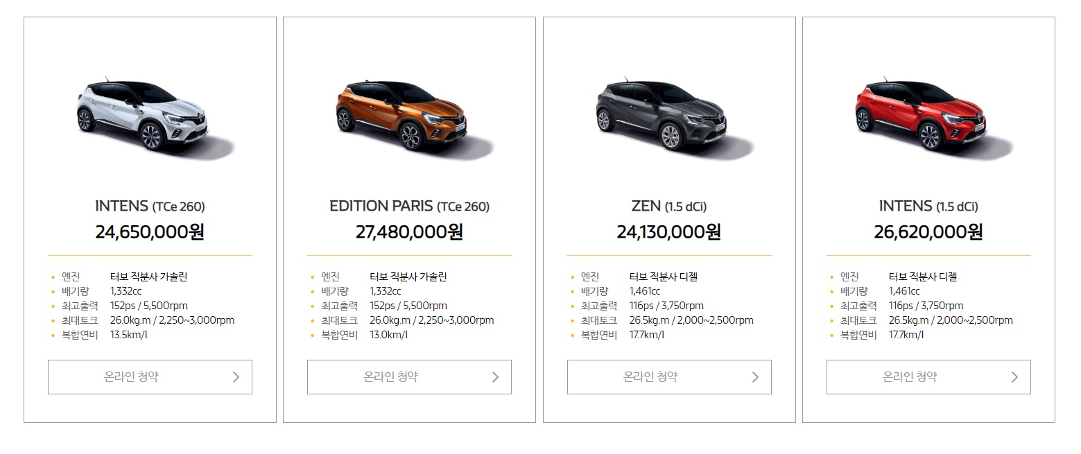 르노 캡처 최상위 등급인 에디션 파리등급은