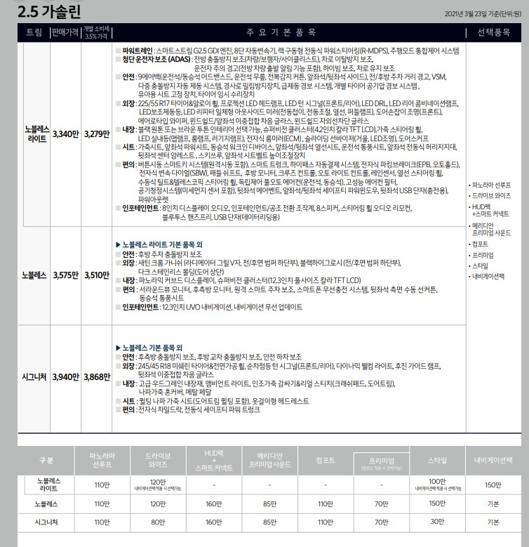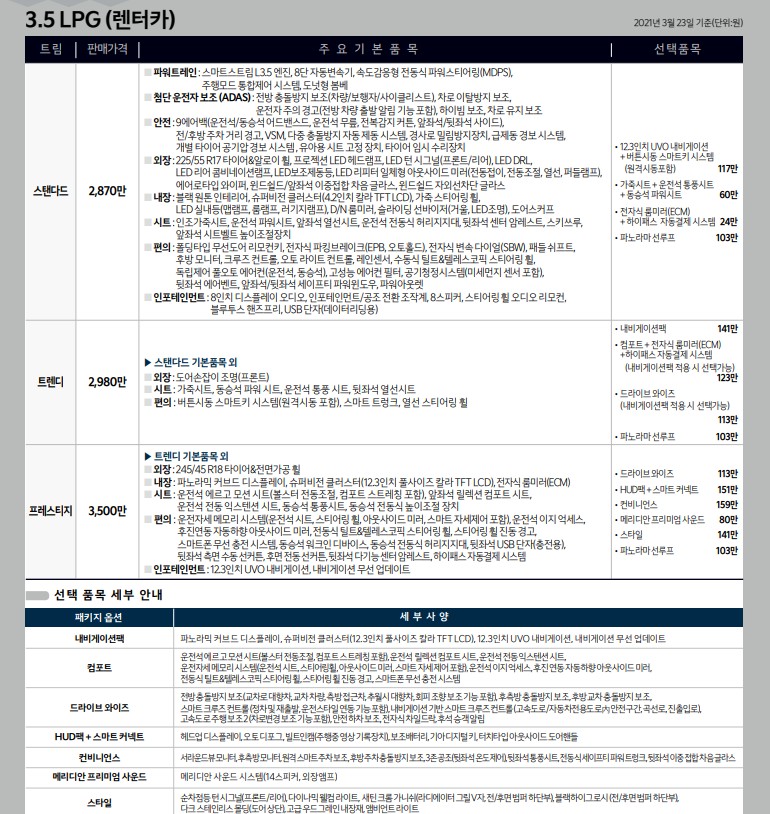 K7 하이브리드 모델 삼천만원 중반 4천만원 초반보다