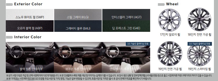 외부 색상은 스노우 화이트펄, 스틸 그레이, 인터스텔라 그레이,