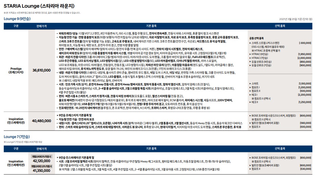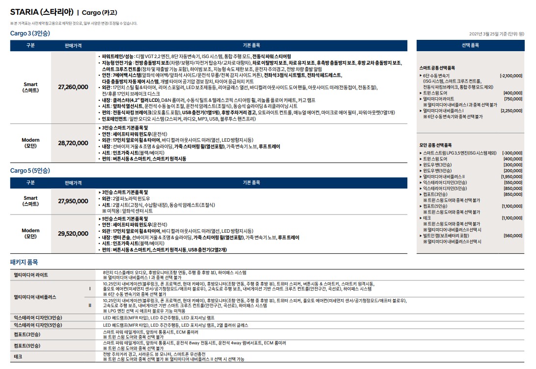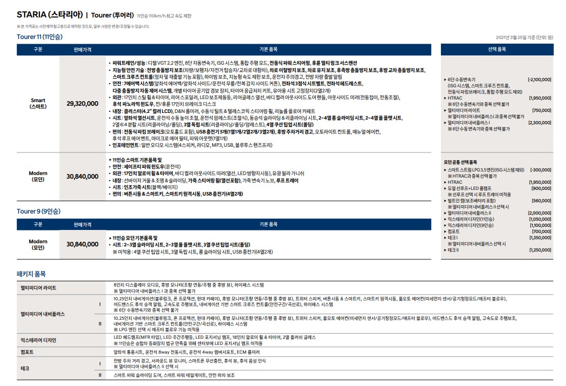 투어러 11인승에 경우 스마트 모던으로 구분되어 있고