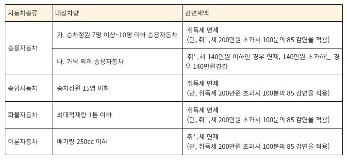 현재로서, 2024년까지는 200만원 이하의 차량에 대해서는 전액 면제되며, 200만원을 초과하면 최대 85%의 할인을 받을 수 있습니다. 여러 대의 차량을 소유하고 계신 경우, 가격이 높은 차량으로 면제를 신청하는 것이 유리할 수 있습니다. 또한, 면제 제외 상황은 양육자 중 1명 이상이 이전에 면제를 받은 차량을 소유한 경우나 가족 이외의 다른 사람과 공동명의로 차량을 등록하는 경우에 해당하지 않습니다. 이 점을 참고하시기 바랍니다.